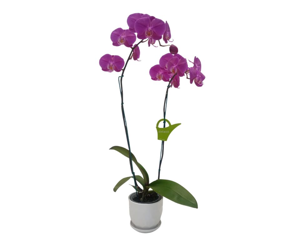 Orquidea «Buffalo»». Altura entre 50 a 55cm. Flor Grande. En maceta transparente #12. No incluye macetero de cerámica. Imagen referencial.
