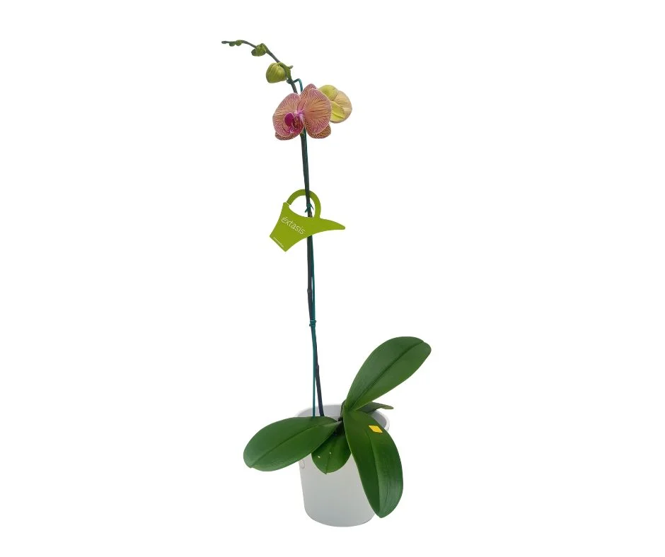 Orquidea GOLDEN LEOPARD. Altura entre 50 a 55cm aprox. Flor entre 7 a 8cm aprox. En maceta transparente #12. No incluye macetero de cerámica. Imagen Refencial