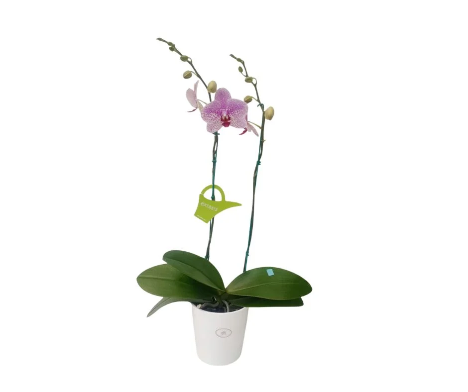Orquidea GOTTEBORG 2 varas. Altura entre 55cm. Flor entre 7 a 8cm. En maceta transparente #12. Imagen referencial. No incluye maceta de cerámica.