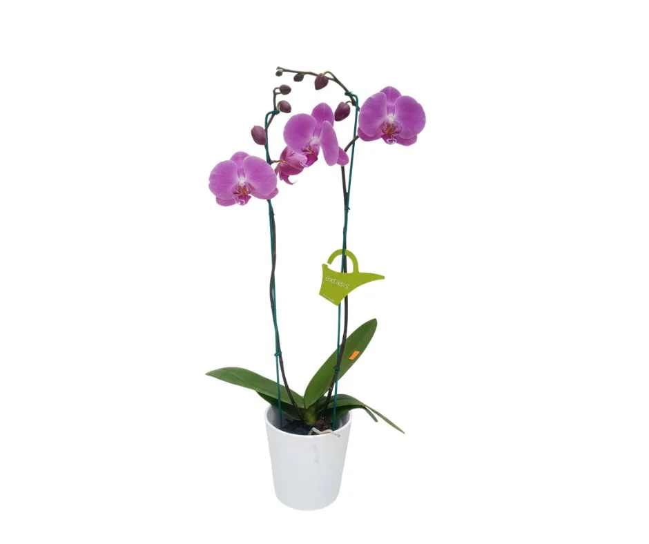 Orquidea Rosada 2 varas. Altura 50cm. Flor 7 a 8cm. En maceta transparente #12. No incluye macetero de cerámica. Imagen referencial.