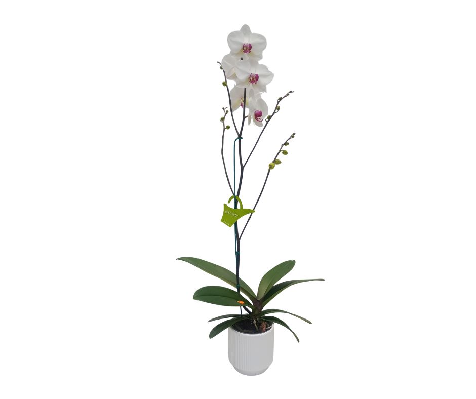 Orquídea Toronto con varas laterales. Altura 60 a 65cm. Flor 7 a 8cm. En maceta transparente #12. No incluye maceta de ceramica. Imagen Referencial.