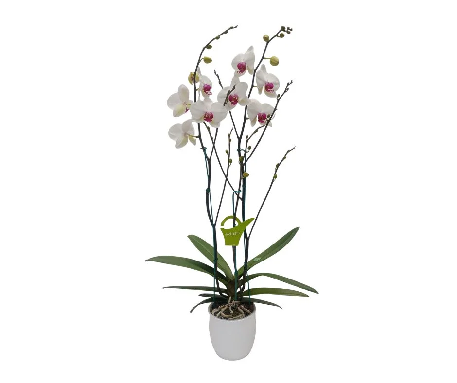 Orquídea Toronto 3 varas. Altura 55 a 60cm. Flor 8 a 9cm. En maceta transparente #15. No incluye maceta de ceramica. Imagen Referencial.